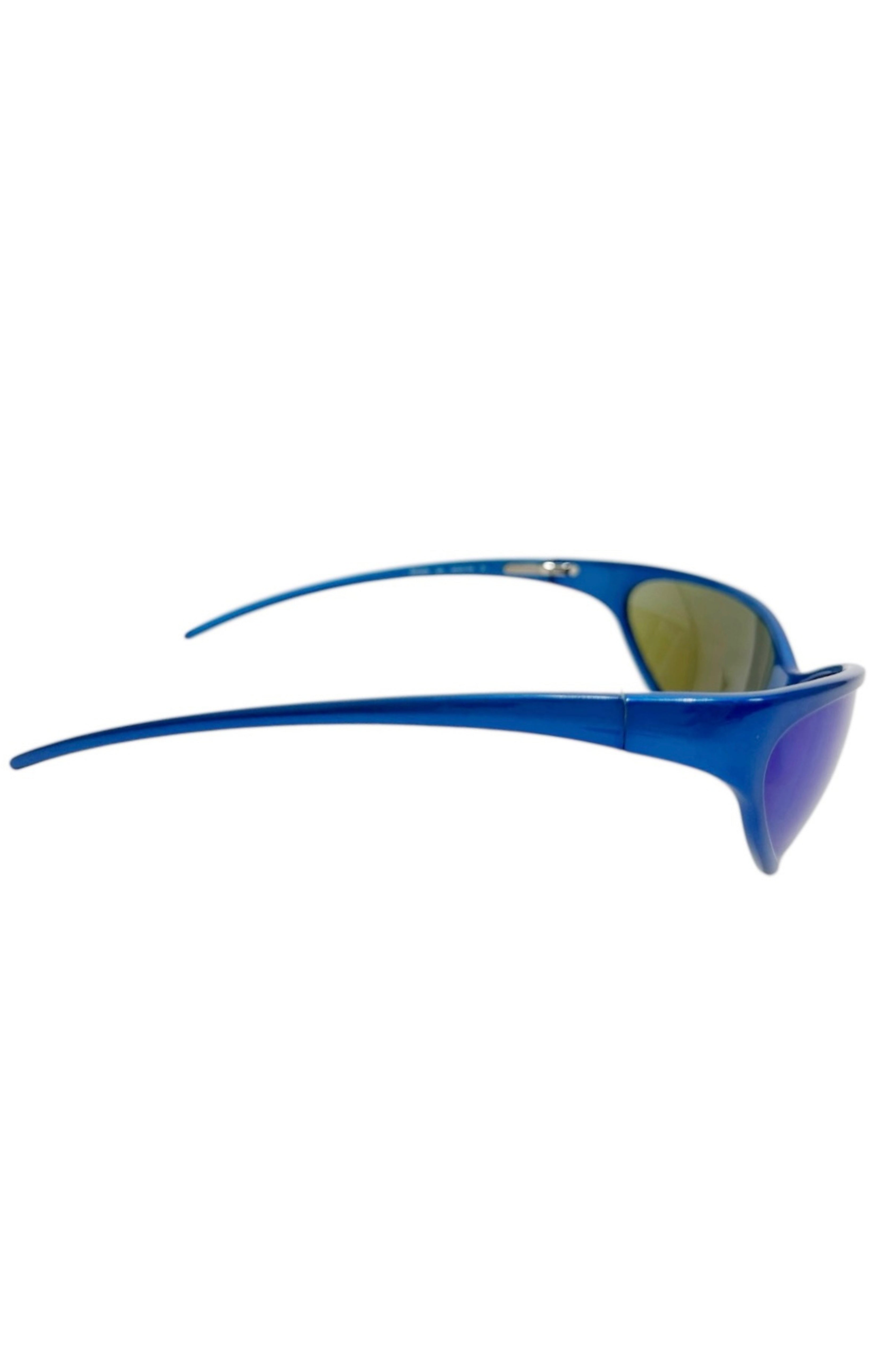 Limited edition style; Blue metallic 4G cat sun glasses with bridge detail, engraved temple logo, and blue reflective/yellow lenses