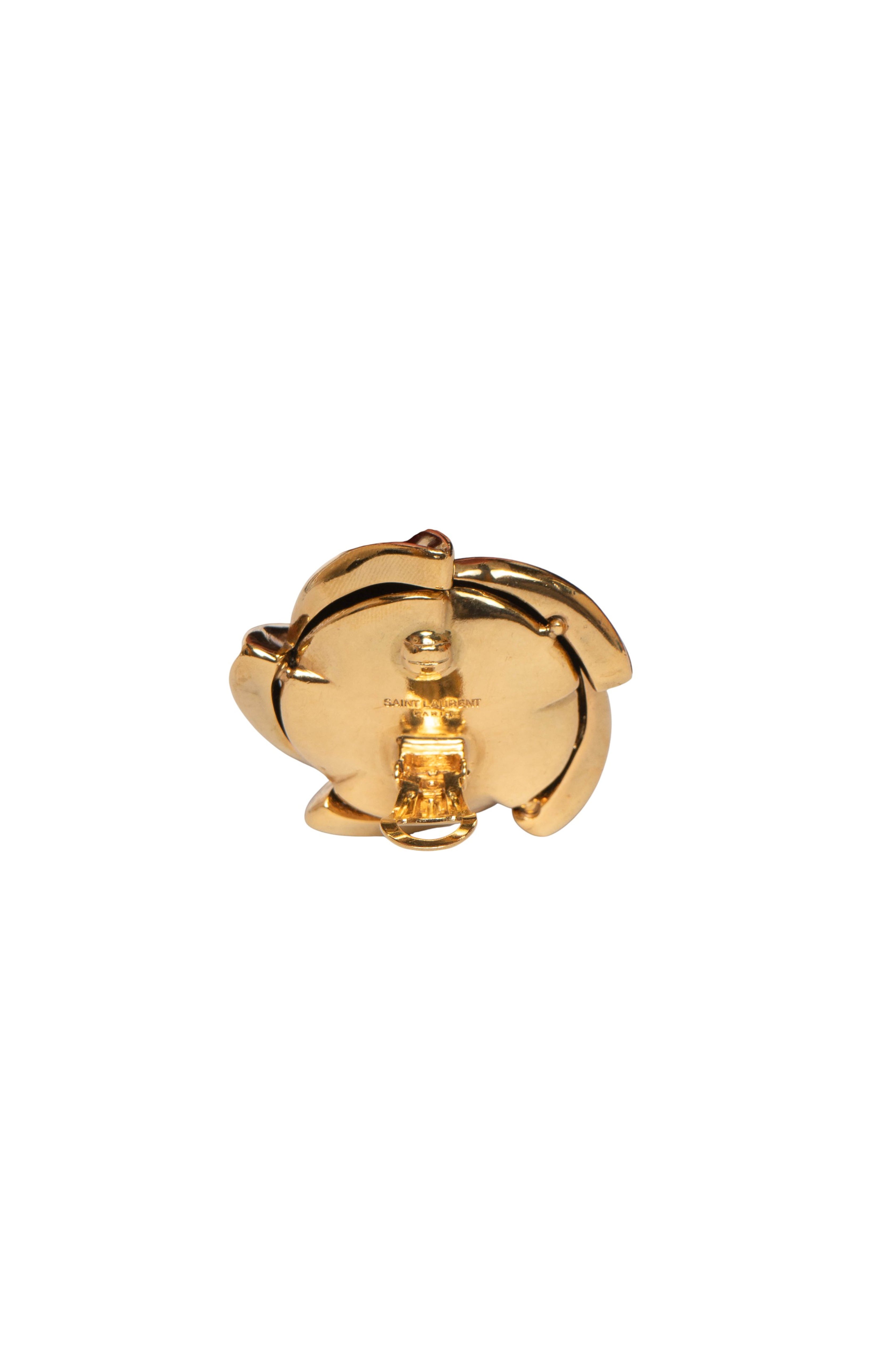 Gold-tone metal and black velvet floral clip-on, oversized statement earrings with back logo engraving